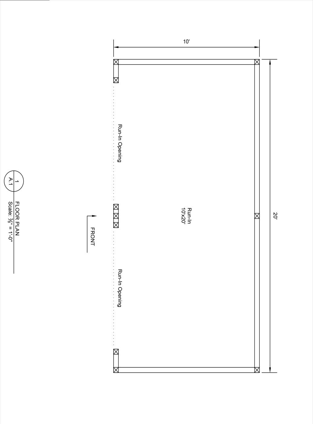 This run-in shed has a 10'x20' run-in area with (2) openings. The run-in area is lined with 4' high oak kick boards. On each end of the barn, up near the peak, are gable vents.